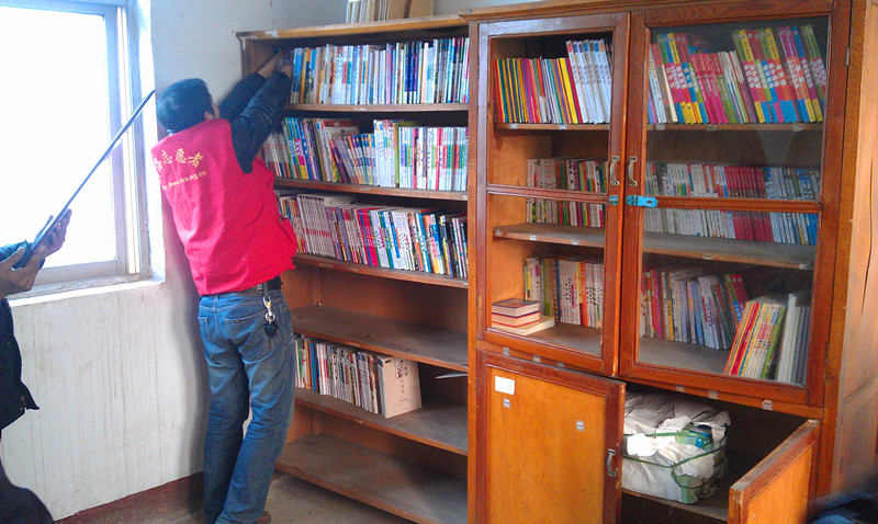 從蘇溝小學(xué)畢業(yè)的志愿者正在幫忙整理圖書