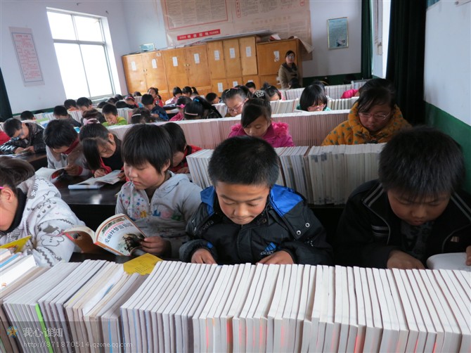 聶屯小學(xué)的孩子們正在認真地閱讀我們送去的圖書