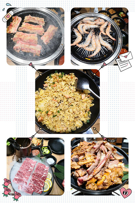 中午11時,編輯中心以小組為單位集合前往聚餐地點。由于疫情關(guān)系和人員數(shù)量問題,此次聚餐分為六個地點,分別是泉舜海底撈、泉舜黑??救饬侠怼汖埵ケA_巴海鮮烤肉自助、寶龍海底撈、天府火鍋、泉舜權(quán)牛道章魚水煎肉??救狻⒒疱?、飲料、水果……這樣的神仙操作誰能不開心呢?