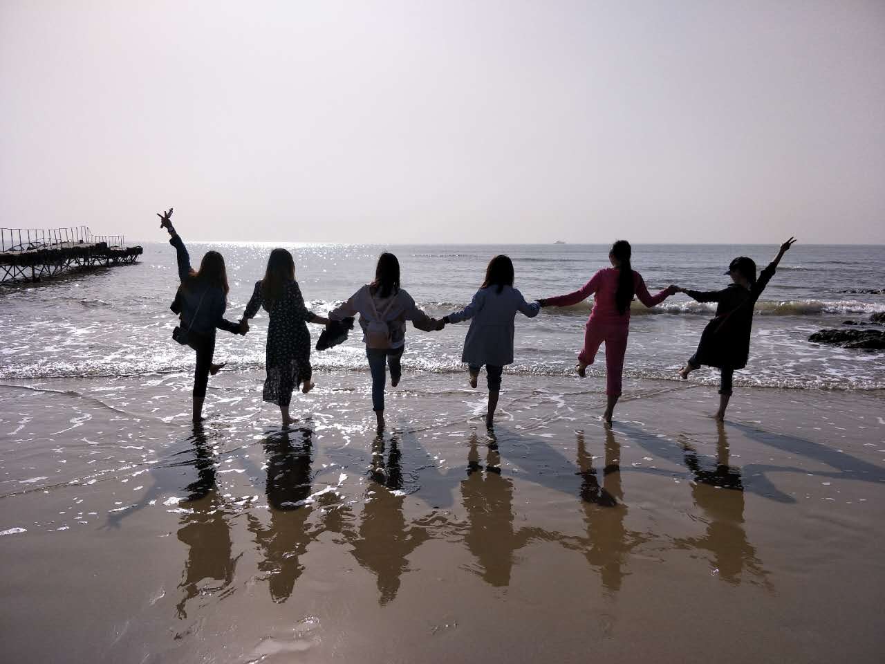 赤腳踩在沙灘上,圍一圈,見證我們的緣