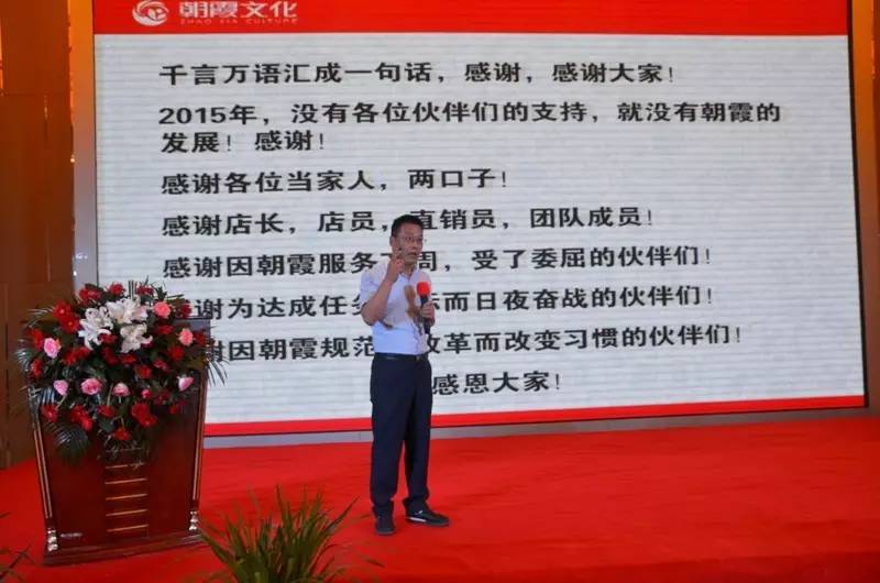 大會(huì)在董事長(zhǎng)張振民先生的致辭中拉開了帷幕!致辭中,他感謝每一位合作伙伴。他說,2015年,沒有各位伙伴的支持,就沒有朝霞的發(fā)展。感謝各位的辛勤付出和努力;感謝大家給予朝霞的包容及熱情的支持和配合。同時(shí),他也表明此次大會(huì)之所以選址紅旗渠,正是一種精神指引,一種思想的契合。朝霞希望和各位經(jīng)銷商一起汲取紅旗渠精神的營(yíng)養(yǎng),砥礪斗志,一起團(tuán)結(jié)協(xié)作,一起艱苦創(chuàng)業(yè),一起創(chuàng)造奇跡!