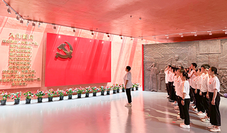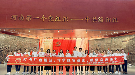 帶著對黨的崇敬,黨員同志們來到了中共洛陽組誕生地紀念館。站在黨旗下,緊握右拳,莊嚴宣誓,一股前所未有的責任感油然而生。