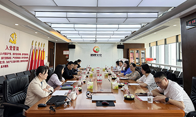 2025年4月10日,江西人民出版社社長、總編輯梁菁率團(tuán)隊(duì)蒞臨朝霞文化指導(dǎo)交流,朝霞文化董事長張振民攜高層管理團(tuán)隊(duì)熱情接待。雙方就行業(yè)政策、市場變化、各自創(chuàng)新發(fā)展路徑等議題展開深度交流。