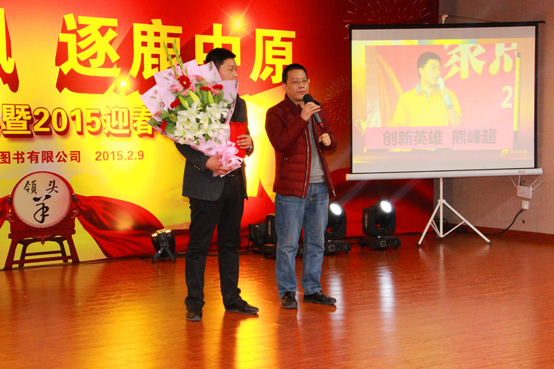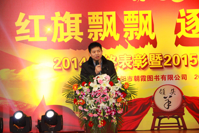 大會在激情、熱烈、活躍的氣氛中開場。首先由劉總致開幕詞,他指出,2014年我們提出“讓創(chuàng)新發(fā)生”這一口號并付諸實踐,取得了顯著成效,2015年,我們將繼續(xù)高舉“創(chuàng)新”的大旗,讓創(chuàng)新再發(fā)生,共同續(xù)寫朝霞圖書新的篇章!